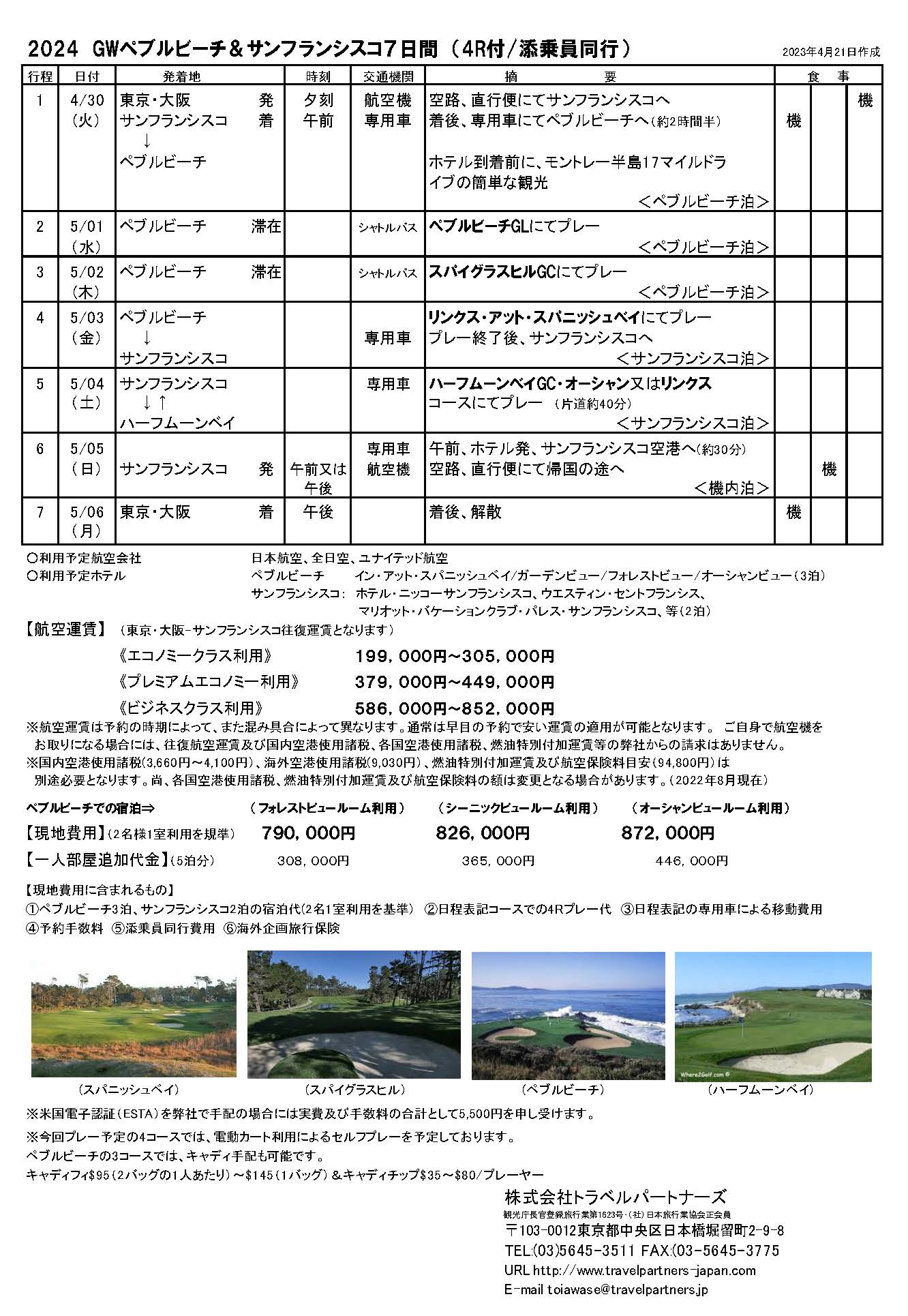 6. 2023夏休み ペブルビーチゴルフ&サンフランシスコ 7日間